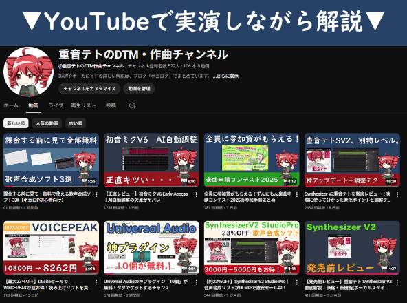 続きを読むあけましておめでとうございます。 いつも動画を見ていただき、本当にありがとうございます。 昨年は、DTMや音楽制作に関する動画を通して、 たくさんのコメントや反応をいただきました。 本当にありがとうございます。 今年やりたいこと・作る予定のコンテンツ https://youtu.be/0GAW5KtasUU 2026年は、入門的なDTM&ボカロをテーマ