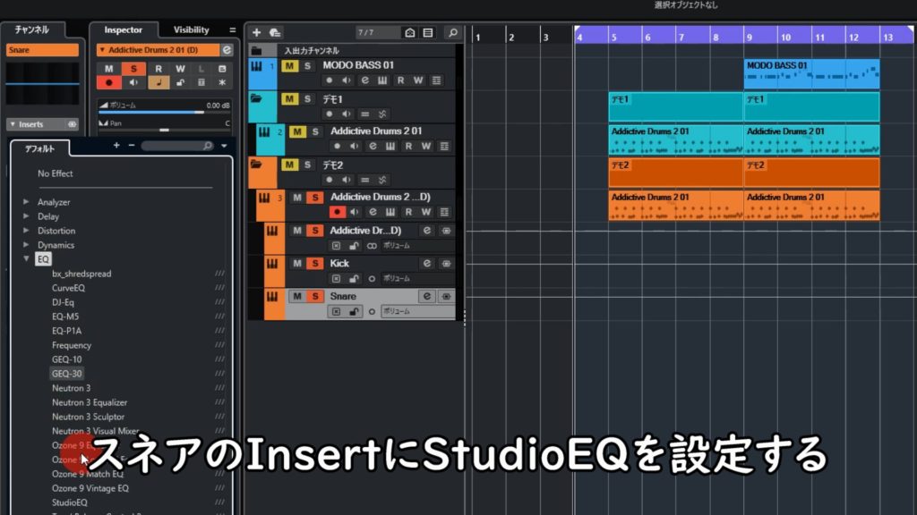 - スネアのInsertにStudioEQを設定する