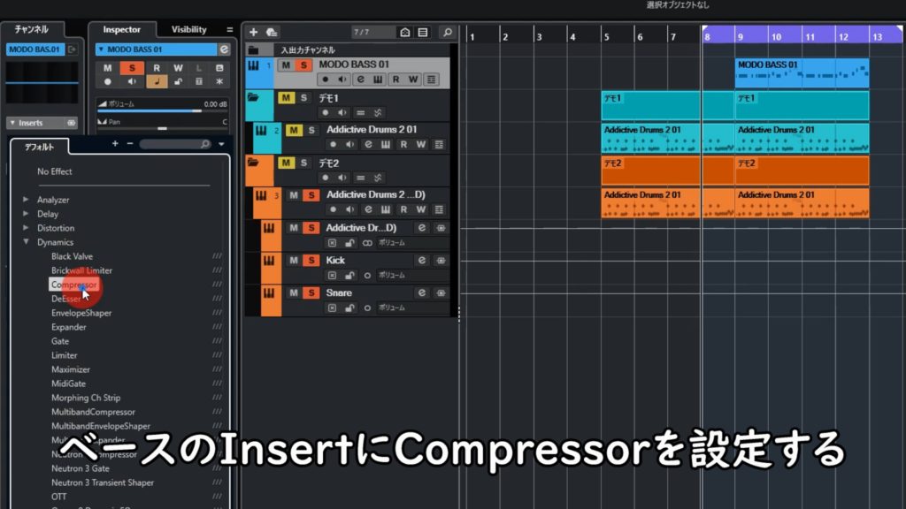 - ベースのInsertにCompressorを設定する