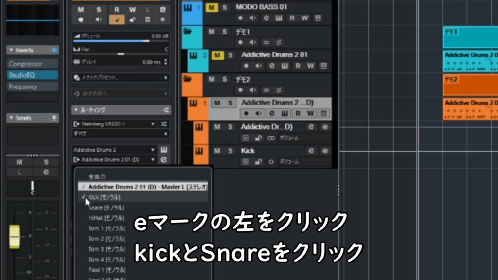 キックとスネアだけパラアウトして個別に設定する