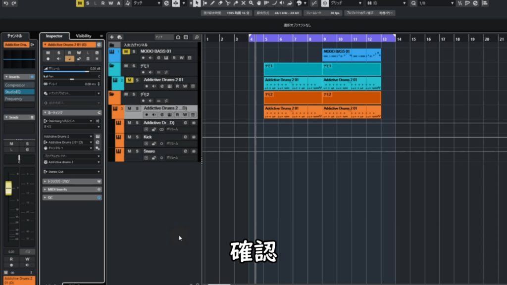 EQ処理はCubase純正プラグインのStudioEQを使います。