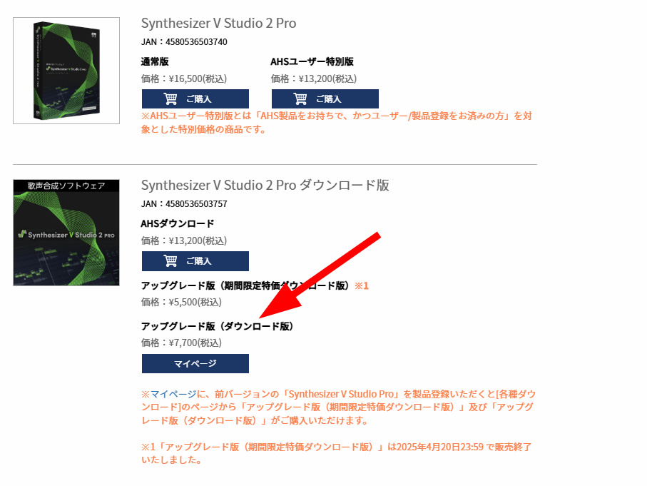 ▼Synthesizer V Studio 2 Pro アップグレード版