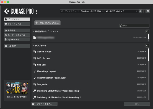 Cubase起動時の「Hub画面」に、プロジェクトの5秒プレビューが表示されるようになりました。