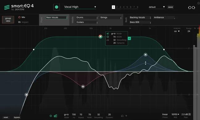 - ボーカルのように帯域が密集した素材でも細かく調整しやすい