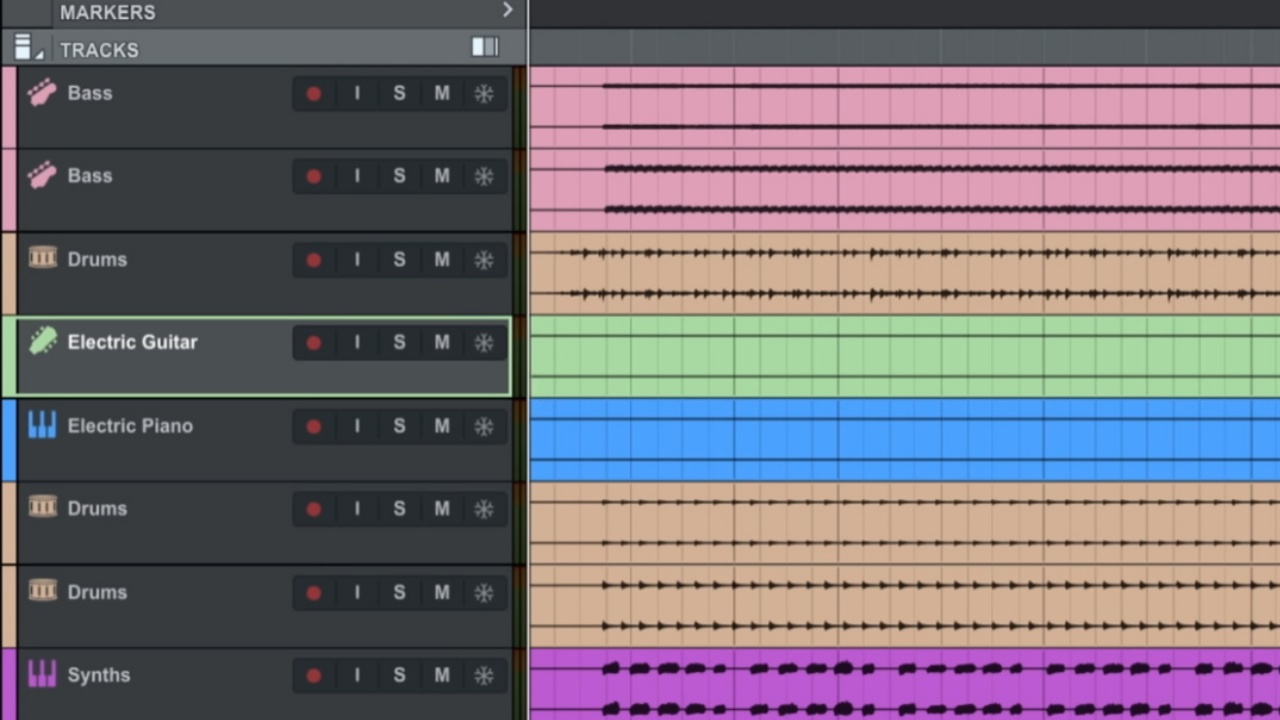 Cubaseの場合、トラックの色分けは手作業になります。