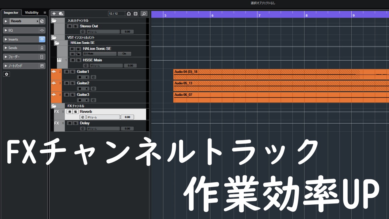 この記事では、Cubase FXチャンネルトラックのメリットと使い方について解説しています。 もし、あなたが、、、 FXチャンネルトラックのメリットと使い方を知りたい 作業スピードを早くしたい まとめてエフェクト(リバーブ、ディレイ、アンプシュミレーター)をかけたい って方の参考になれば幸いです。 エフェクトを使う場合は、各トラックごとにプラグインを挿す