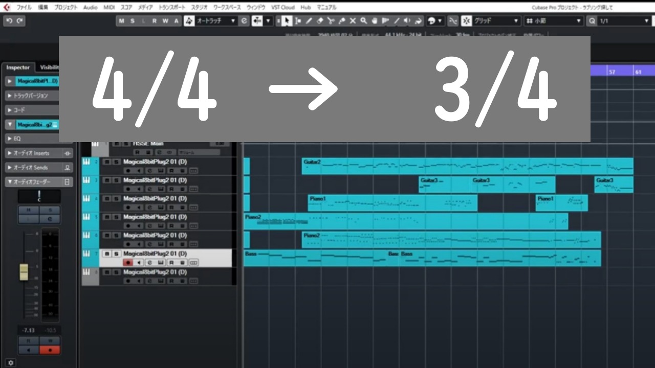 この記事ではCubaseの拍子の変え方について紹介しています。 こんな方におすすめです↓↓↓ 4/4拍子から別の拍子に変えたい(例えば、4/4から3/4) 曲の一部分(途中)だけ拍子を変えた 使用機材 Cubase 11Pro オーディオインターフェース:Steinberg UR12 手順~曲全体と一部分の変え方 曲全体(始ま