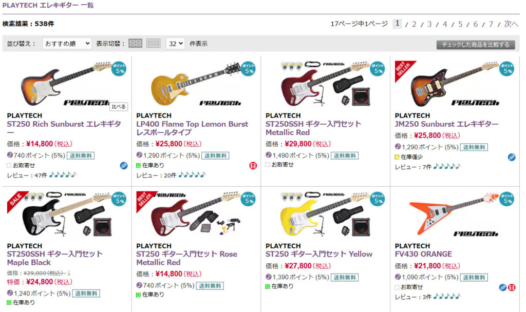 楽器本体だけでなく、ケーブル・ピック・電池などの消耗品までお得にそろえられるのが最大の魅力。