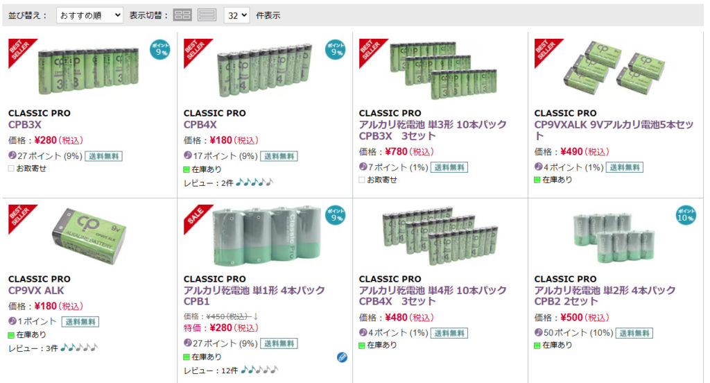 - その他、単3・単4なども取り扱いあり