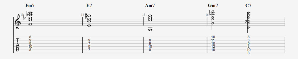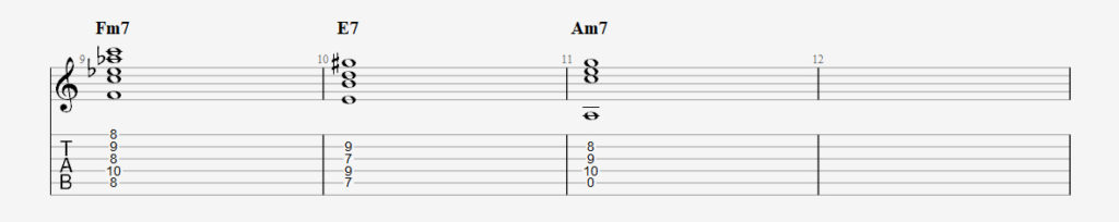 楽曲を作りたい人は、FM7 → E7 → Am7(→ Gm7 → C7)をぜひ試してみてください。