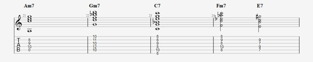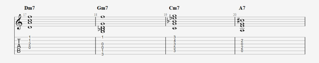 さらに、Am7 のあとに「Gm7 → C7」を追加