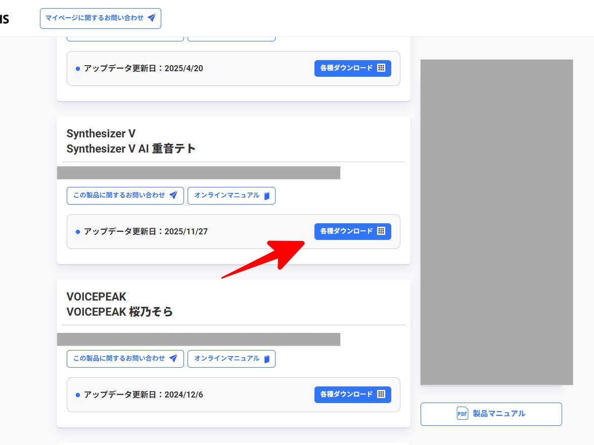 - 重音テトの項目から「各種ダウンロード」を選択※1