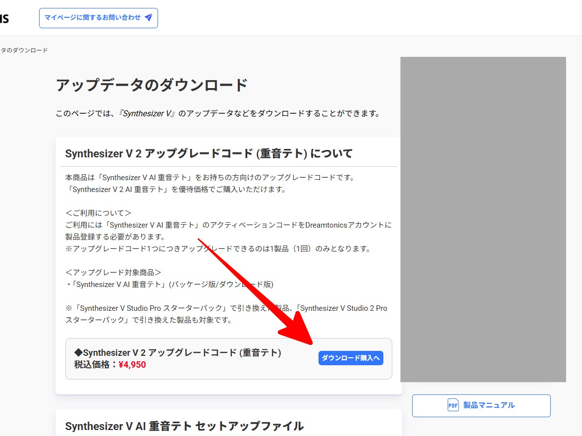 - アップグレードコードの「ダウンロード購入へ」を選択
