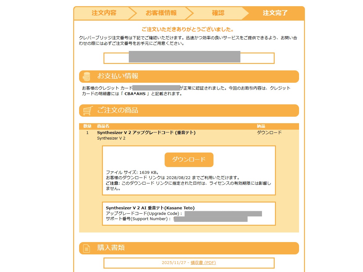 ●アップグレードコードが発行される