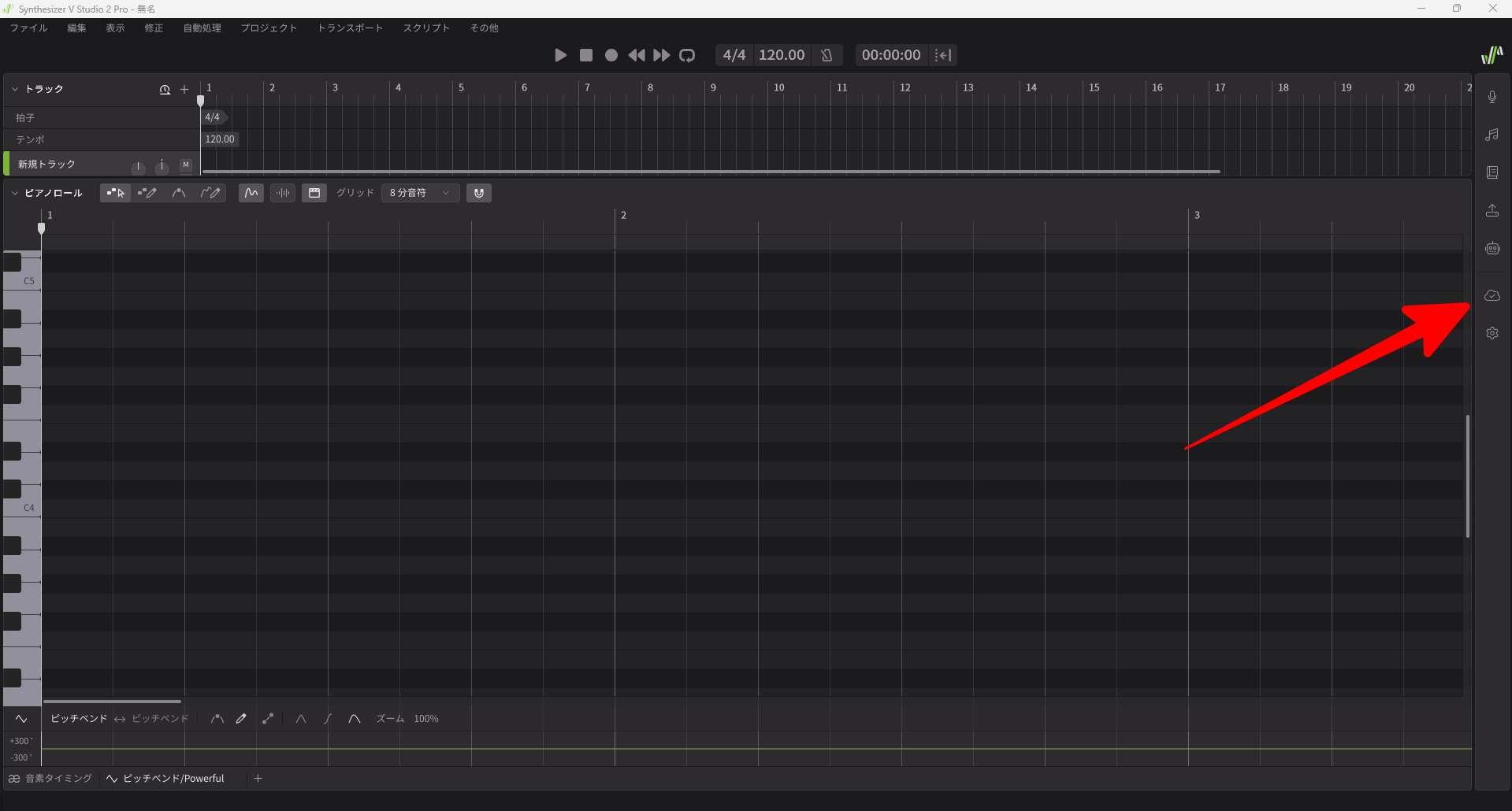 ●studio2を開き雲マークを選択