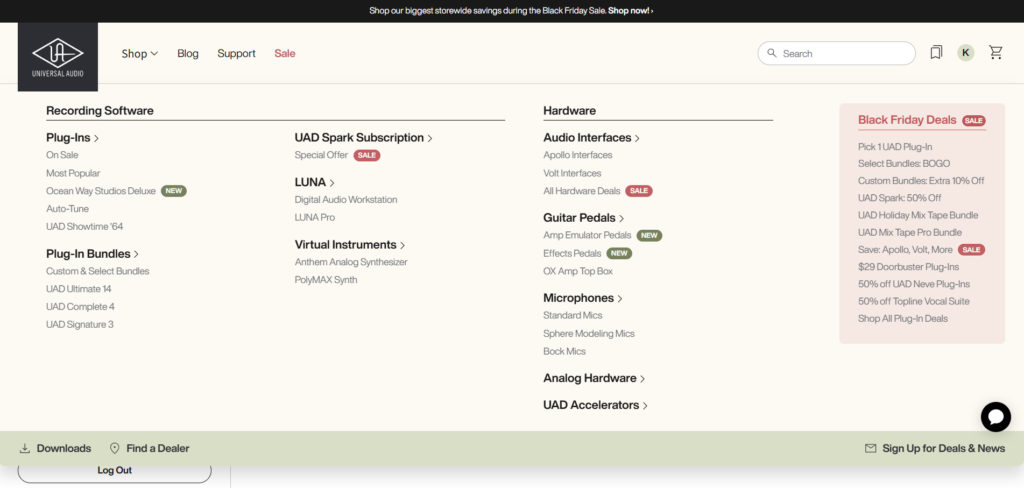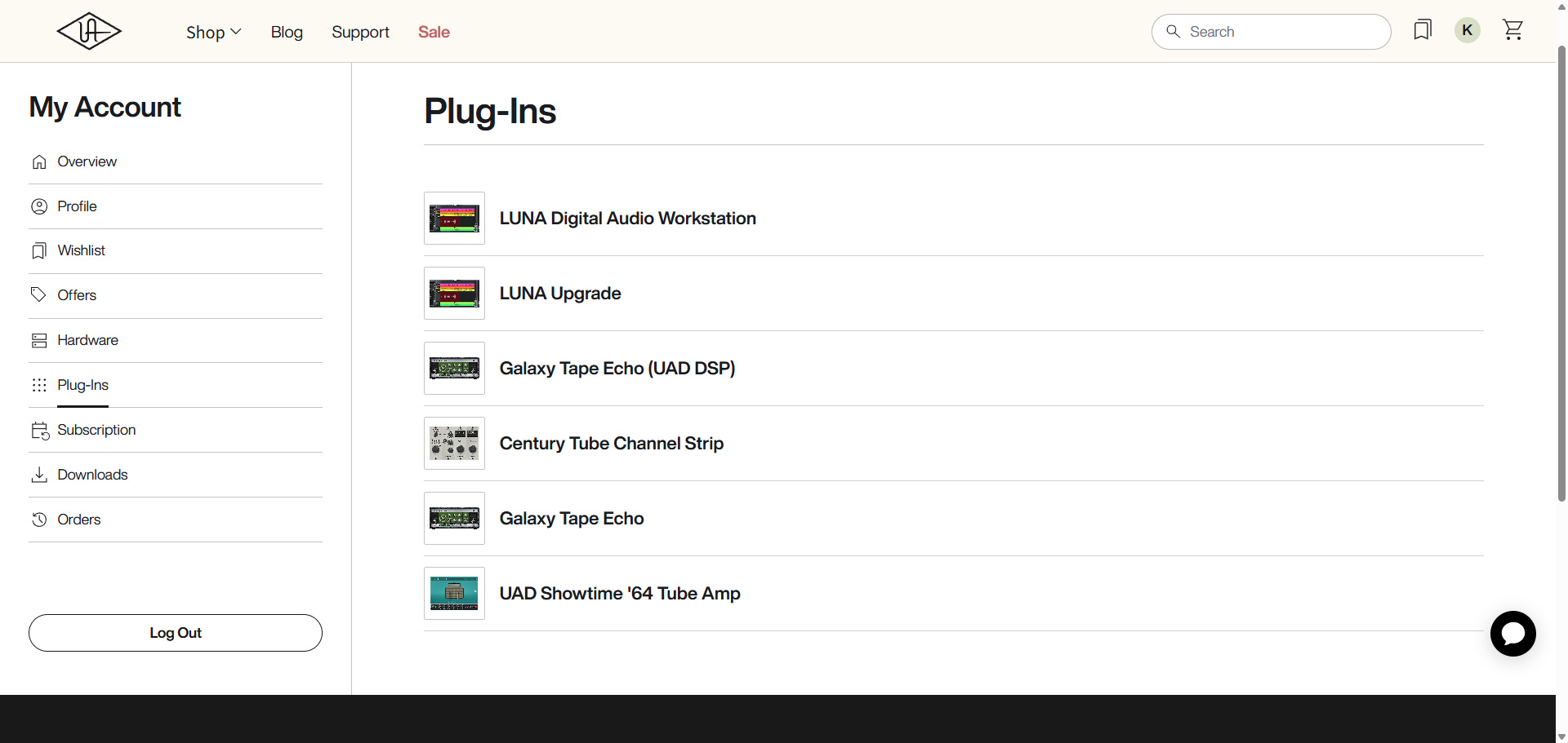 - Universal Audioの公式サイトでアカウント作成 → ログイン