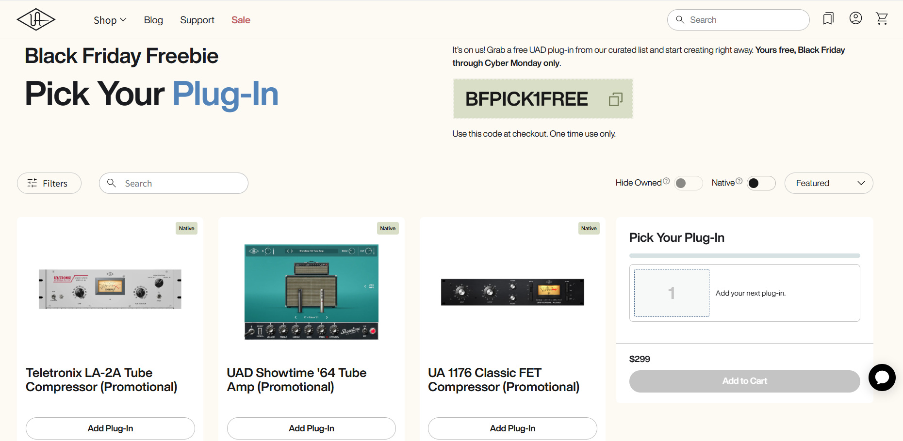 Universal Audio(UAD)が期間限定で10種類の人気プラグインの中から好きな1つを無料配布しています。
